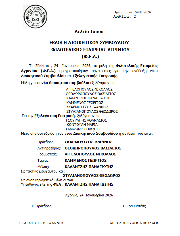 Ζώντας τις «καλύτερες της στιγμές» ξεκίνησε η Φιλοτελική Εταιρεία Αγρινίου το νέο έτος 2026.